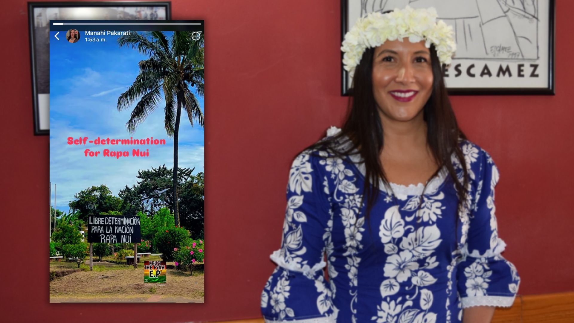 La historia, difundida el pasado 24 de diciembre, mostraba un cartel con la consigna “Libre determinación para la nación Rapa Nui”, acompañado del texto en inglés “Self-determination for Rapa Nui”, lo que generó críticas transversales desde el Congreso, particularmente en la Comisión de Relaciones Exteriores.